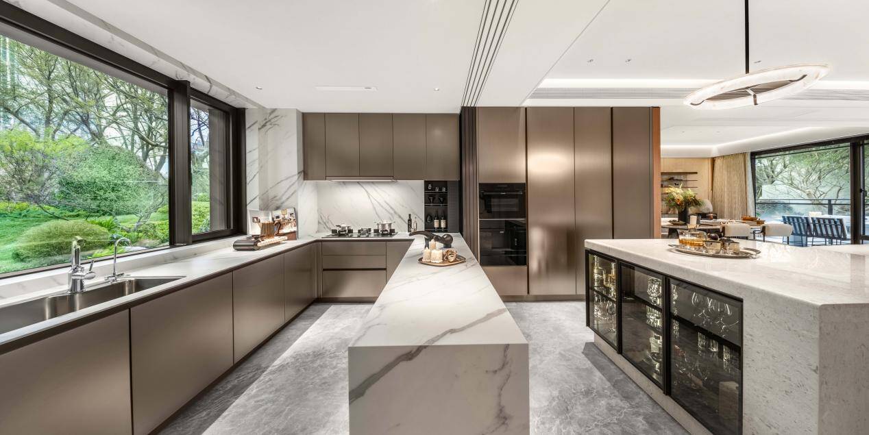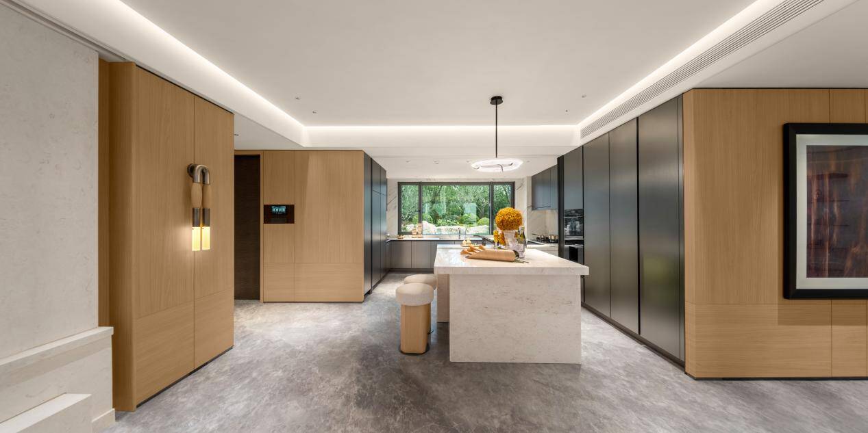 奢阔社交餐厨系统,定制宴会级悦享:奢阔社交餐厨系统采用LDKB一体化设计,以超大尺度营造开阔通透的视觉与使用体验,强化空间的社交属性与互动性。科学动线规划,让烹饪、备餐、用餐、交流互不干扰,兼顾实用性与仪式感,可轻松满足家庭日常用餐、亲友聚会、小型宴请等多元场景,打造宴会级的用餐体验与生活享受。定制化的空间布局与美学设计,让餐厨空间既承载烟火生活,又彰显高端居住格调,实现功能与品质的双重升级。